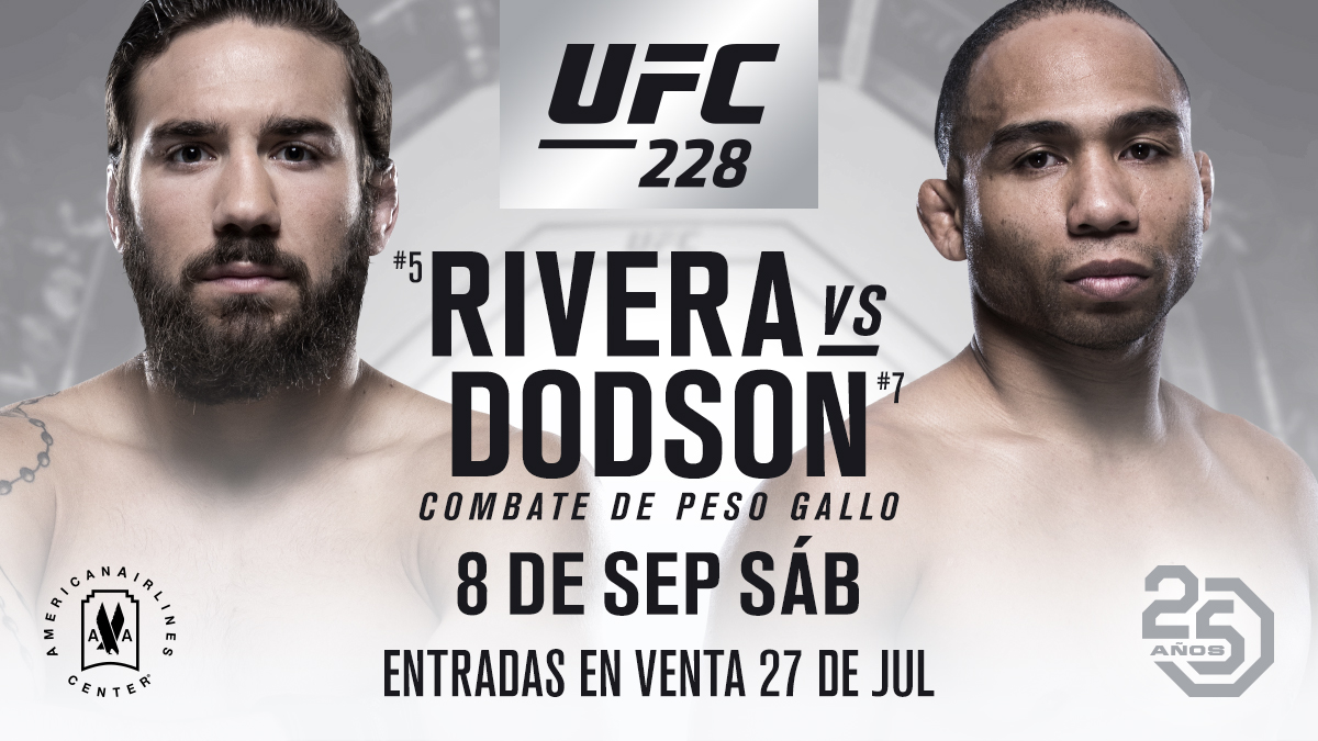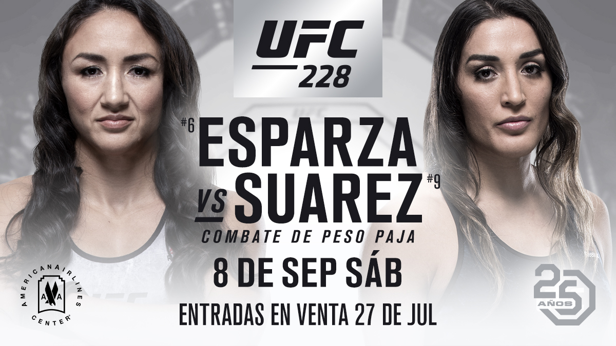 Dos de las mejores pesos paja del mundo se enfrentan en UFC 228 el próximo 8 de Septiembre en Dallas, Texas: Jessica Andrade vs Karolina Kowalkiewicz Esa misma noche también la ex campeona Carla Esparza y número 6 del ranking peso paja enfrentará a la ganadora de The Ultimate Fighter y 9 en los rankings Tatiana Suarez. Además, el combate peso gallo entre Jimmie Rivera y John Dodson promete explosión pues ambos a pesar de tener buenas rachas necesitan de una victoria para mantenerse vigentes en la coversación de contendientes. Otra interesante pelea será en peso gallo cuando dos Top 10 Aljamain Sterling y Cody Stamann quienes chocarán en su búsqueda por seguir escalando puestos. En esta cartelera también se anunció la pelea por el título peso mosca entre Nicco Montano y Valentina Shevchenko y la esperada Yair Rodríguez vs Zabit Magomedsharipov. El mexicano peso mosca Roberto Sanchez enfrentará a Ryan Benoit, Charles Byrd vs Darren Stewart se verán las caras en peso medio, y Geoff Neal vs Frank Camacho en welter. Los boletos saldrán a la venta el 27 de Julio y más peleas se anunciarán próximamente.